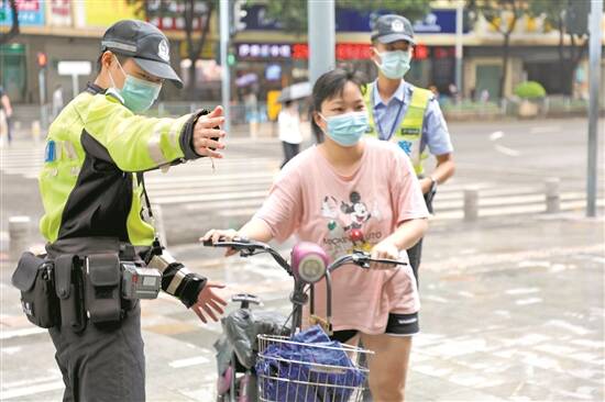 一名市民骑电动车未戴头盔被拦下 |
