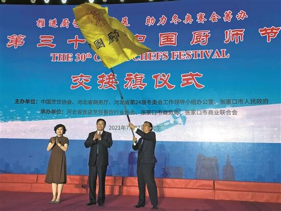羊城晚报讯 记者蚁璐雅、通讯员庄端摄影报道:7月27日,第30届中国厨师节在北京闭幕,潮州市委副书记崔建军接过中国厨师节会旗,标志着潮州市正式接棒第31届中国厨师节。潮州市文广旅体局局长伍茸、潮州市人社局副局长潘淳、潮州市文广旅体局四级调研员苏怀杰受邀出席交旗仪式。 记者从潮州市文化广电旅游体育局了解到,第31届中国厨师节将于2022年在潮州市举办。中国厨师节是中国烹饪协会主办的高规格餐饮业活动,被誉为“中国厨师峰会”“世界厨师的奥林匹克”和“餐饮行业的广交会”。中国厨师节在潮州举办,对提高潮州餐饮文化水平及整个餐饮行业具有重要意义,对传承美食文化具有重要影响,将为潮州餐饮业的发展带来难得的契机。 据悉,今年5月份,潮州市人民政府正式向中国烹饪协会提出举办第31届中国厨师节的申请,并获中国烹饪协会通过。 在本届厨师节表彰仪式上,潮州市省级非遗代表性传承人刘宗桂也被中国烹饪协会授予2020年度金厨奖。