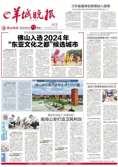 羊城晚报讯 记者景瑾瑾、通讯员邹红摄影报道:记者从佛山市文广旅体局获悉,近日,文化和旅游部国际交流与合作局通报2023年至2025年“东亚文化之都”评审初审结果,佛山市成功入选2024年“东亚文化之都”候选城市。 佛山是岭南文化的发源地之一,素有陶艺之乡、武术之乡、美食之乡、粤剧之乡、岭南成药之乡、狮艺之乡、民间艺术之乡等美誉,是全国文明城市、国家级历史文化名城、国家公共文化服务体系示范区、中国优秀旅游城市。 1994年,佛山获批成为国家历史文化名城。近30年来,佛山通过对传统文化资源的发掘和保护,与现代文化交织融合,使历史文化名城的内涵不断丰富。目前,佛山拥有8个全国重点文物保护单位,省文物保护单位54处;共有国家级非遗传承人15人,省级传承人58人,市级传承人226人;共有国家级非遗项目15项,省级非遗项目50项,市级非遗项目131项。此外,全市已有及在建博物馆类147家,美术馆类97家,共244家。 2019年,佛山以全国第三、东部地级市第一名的成绩,成功创建为全国公共文化服务体系示范区。截至目前,全市万人拥有公共文化设施室内面积1768.89平方米,人均体育场地面积2.81平方米;联合图书馆成员馆发展至349家,人均公共藏书达1.4册;18个文化建设重点项目稳步推进,市博物馆新馆、南海高新区文化中心、沧江水上综合运动基地、“三江汇流湾区之源”文化景观带等一批重点公共文化设施规模显现。 2000年,佛山入选第二批全国优秀旅游城市。目前,全市有对外开放A级景区33家,旅行社143家。“十三五”期间佛山旅游业总收入五年累计3360亿元,接待游客2.47亿人次。禅城区、高明区成功获评为广东省全域旅游示范区,并积极创建全国全域旅游示范区,南海区、顺德区、三水区入选广东省全域旅游示范区创建单位。 作为粤菜发源地之一,佛山素有“食在广州,厨出凤城”的美誉。2004年,佛山顺德被中国烹饪协会命名为“中国厨师之乡”;2011年,佛山被评为“中国粤菜名城”。 佛山是中国南派武术主要发祥地,世界上广泛流行的洪拳、蔡李佛拳、咏春拳等都发祥于此。佛山是全国唯一由中国武术协会授予的“武术之城”,也是首个“中国龙狮龙舟运动名城”。当前,佛山市正努力建设“世界功夫之城”。 佛山也是粤剧的主要发源地之一,粤剧艺人的代称“红船弟子”和粤剧最早的戏行组织琼花会馆都源于佛山。位于佛山祖庙内的万福台建于清顺治十五年(1658年),是岭南地区规模最大、保存最完好的古戏台。至今,佛山民间还活跃着数百个粤剧爱好者组织“私伙局”,粤剧群众基础扎实。 近年来,佛山与国际友好城市、友好组织和人士建立广泛而紧密的联系,灵活多样地开展民间对外交往项目,推动佛山与13个国家的17个城市建立国际友好城市关系,并在交流中大力推介本地文化品牌。
