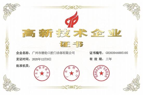 德伦口腔荣获高新技术企业称号
