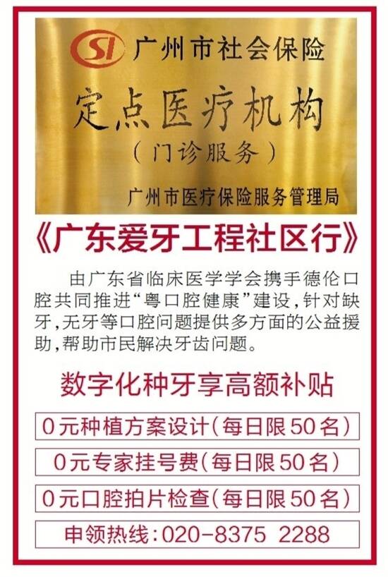 文/丁香 好牙好口福,种牙有补贴 60岁的黄伯后槽牙松动半年,牙齿经常会出现剧烈酸痛,来到德伦进行舒适无痛种牙后,生活质量大大提高,吃东西也变得利索!想种牙,但担心价格高?这回好消息来了!无门槛爱牙补贴限量发放,进口种植牙最高补贴6000元,单颗牙齿缺失/半口牙齿缺失/全口牙齿缺失人士均可申领。 定期检查口腔,预防牙齿脱落 我国成年人中患有牙周病人群占9成,也就是说十个成年人里面就有九个患有牙周病,而他们对此并不知情。牙周病最典型表现症状就是牙出血,牙龈肿痛,最后变得牙齿松动、掉落、无牙可用。所以我们要定期进行口腔检查,预防牙周病,避免因为牙周病而牙齿松动并脱落! 数字化种牙,快速恢复一口牙 无牙颌种植技术是通过数字化3D模型分析,精准植入最少的种植体,实现全口/半口缺牙修复。拔牙、种牙、戴冠一步到位,省时省力更省心,治疗周期相对短;准确植入,减少植骨,更能节约费用;微创舒适,无痛诊疗;稳固耐用,使用寿命长!