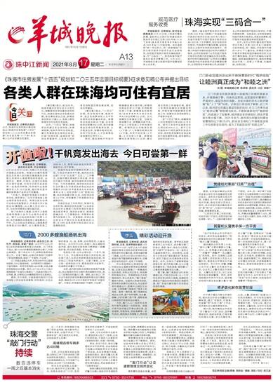 羊城晚报讯 记者钱瑜,通讯员许嘉伟、石兆华报道:8月16日中午12时,为期3个半月的休渔期正式结束。珠海1015艘休渔渔船及在珠海入会的数百艘港澳流动渔船从洪湾中心渔港等地扬帆起航,出海作业