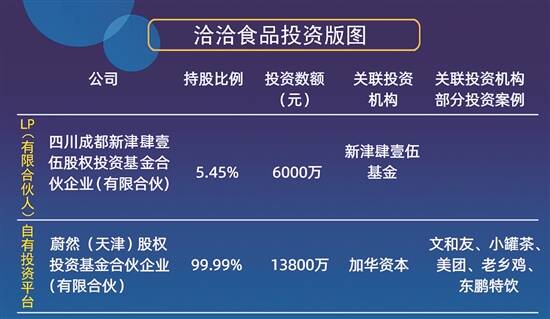 在四川成都新津肆壹伍这只基金中,另一个国民食品品牌的身影出现了——洽洽食品出资6000万元人民币,持股5.45%。