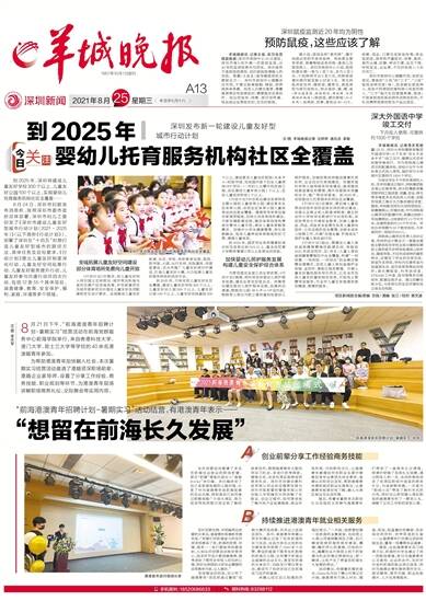 文/图 羊城晚报记者 沈婷婷 通讯员 孟敏 到2025年,深圳将建成儿童友好学校300个以上、儿童友好公园100个以上,实现婴幼儿托育服务机构社区全覆盖…… 8月24日,