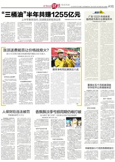 羊城晚报记者 程行欢 实习生 叶倩琳 近日,“三桶油”半年报已全部公布,上半年扭亏为盈,合计实现净利润1255.18亿元。其中,中国石化实现营业收入12616.03万亿元,净利润达