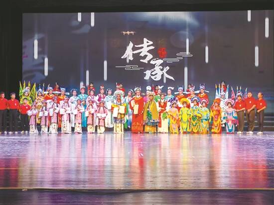 羊城晚报讯 记者余晓玲、通讯员利民摄影报道:传承有戏,致敬国粹。近日,文化致敬·红心向党——东莞市社会文艺团队公益行动系列活动“传承有戏——百名戏剧演员展演”在东莞市文化馆星剧场上演。韵味醇厚、耐人寻味的京剧,唱腔淳朴流畅、以明快抒情见长的黄梅戏和粤剧的唱念做打共聚舞台,碰撞出了中国传统戏曲的艺术火花。 戏曲是中华优秀传统文化的重要组成部分,在历史文脉中有特殊地位,是中华民族文化复兴进程中不可或缺的重要组成部分。东莞市文化馆推出本期戏剧展演,充分展现了传统戏曲文化生生不息的魅力,歌颂了戏曲传承人初心不改,接力传承的理想信念。 据悉,为庆祝中国共产党成立100周年,歌颂党的光辉历程和伟大成就,东莞市文化馆联合众多本土文艺团队开展“文化致敬·红心向党”——东莞市社会文艺团队公益行动,以文化志愿者大型展演的形式庆祝建党100周年。活动以“百人”阵容进行,陆续推出7+1个视频,内容包括街舞、麒麟、广场舞、古筝、中国鼓、戏剧、龙舟竞技等7个项目和1个集锦视频。