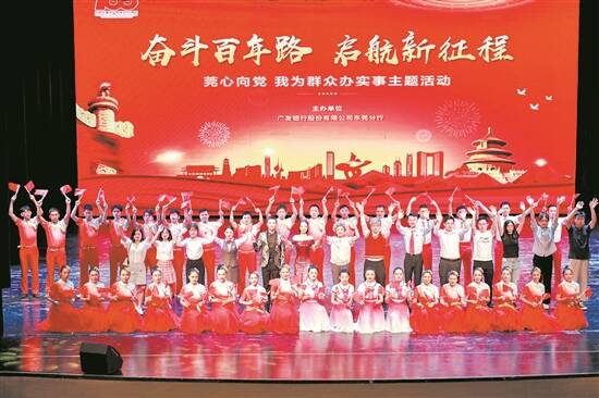 8月30日,广发银行东莞分行在东莞市市民艺术中心举办“奋斗百年路 启航新征程”我为群众办实事主题活动,以创新服务群众方式,庆祝中国共产党成立100周年。本次活动采取现场录制的方式为全行员工记录活动演出呈现的精彩瞬间,多角度、全方位展示广发银行东莞分行坚定不移跟党走的坚定决心和奋发向上的精神面貌。 百年风雨兼程,百年春华秋实。为向党和祖国表达款款深情,广发银行东莞分行中后台条线首先带来了开场舞蹈《鲜红的党旗》,以奋发激昂的音乐旋律、满怀力量的舞蹈动作展示共产党人的初心和使命,并展望新时代的光辉前程。接着,零售条线展示了歌伴舞《唱支山歌给党听》,以洪亮的歌声感谢伟大的中国共产党带领着广发人取得了骄人的成绩、赢得了幸福的生活。紧随其后的是由公司条线呈现的小品演出《幸福号》,通过舞台剧的形式,重现市民卡服务的工作场景,展示广发银行东莞分行切实解决市民群众“急难愁盼”的真情真心。 通过本次别开生面的主题活动,广发银行东莞分行进一步营造了“广发发展,人人有责;广发发展,人人受益”的浓厚氛围,全面提升全体员工对广发事业的认同感、归属感、获得感。 下阶段,广发银行东莞分行将深入推进我为群众办实事实践活动走深走实,以逢山开路、遇水搭桥的精气神,凝心聚力、真抓实干、攻坚克难,奋力开创新时代广发事业改革发展新局面。 (周晓玲 杨文)
