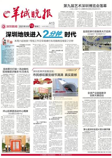 1957年10月1日创刊 2021年9月14日 星期二 辛丑年八月初八 湾区新闻部主编/责编 李斯睿/ 美编 刘栩 / 校对 谢志忠 报料热线:83288112 手