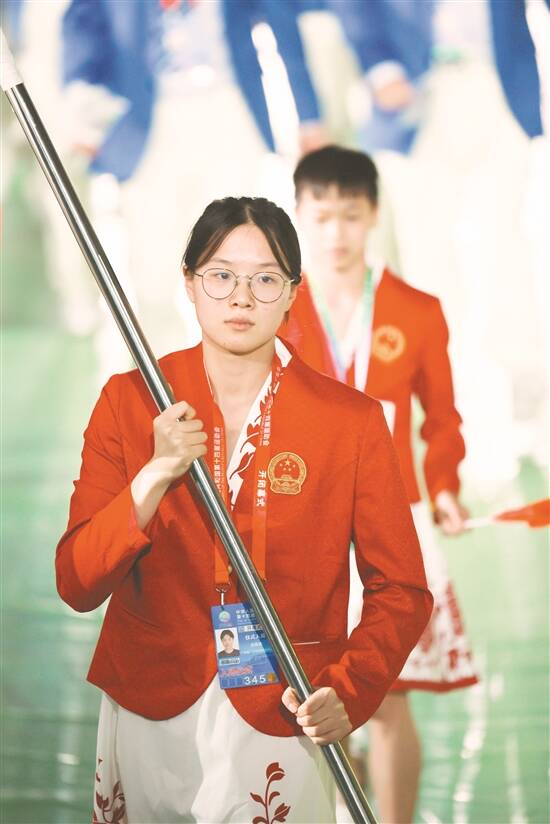 广东代表团旗手汤慕涵 图/视觉中国 |