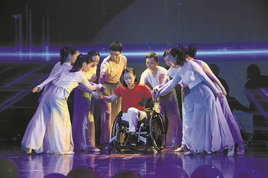 羊城晚报讯 记者余宝珠摄影报道:为进一步展示“党建引领+N”助残品牌成果,深化“我为群众办实事”实践活动,9月16日,东莞市残联举行主题为“党在我心中”的党建助残文艺汇演。本次文艺汇演由市残联主办,市残联机关党委、市残疾人托养中心承办。 在现场,残奥健儿陈敏仪、黄文娟、王小梅、叶继雄为本次文艺汇演送来祝福视频。在刚结束的东京残奥会上,东莞选手满载而归,共斩获3金3银,获得打破两项世界纪录、一项残奥会纪录的优异成绩,金牌数首次跃居全省第一,为广东残疾人体育运动贡献了“东莞力量”。 据介绍,党史学习教育开展以来,东莞市残联将之转化为工作动力和成效,着力解决残疾人群众“急难愁盼”问题,提升残疾人公共服务质量,不断增进残疾人民生福祉和民生品质。东莞市残联党组根据残疾人实际问题,制定了《关于开展“我为群众办实事”实践活动实施方案》,梳理形成19项重点民生工作任务。这19项工作任务涵盖残疾人康复、教育、就业、托养、医疗、文体、无障碍环境建设等方面的内容,基本囊括残联所有业务工作,覆盖全市所有残疾人。 本次汇演分为四个篇章,围绕“党在我心中”的主题,表达东莞市残联每位党员对中国共产党的忠心与赤诚。 汇演开篇在庄严的《国歌》手语舞中拉开了序幕,现场观众齐唱国歌,洪亮的歌声回荡整个现场。市残疾人托养中心学员、“轮椅上的作家”卢巧玲怀着感恩的心,为现场观众带来了她创作的诗朗诵《党之爱 托养情》。肢残歌手鲁超和东莞市特殊幼儿中心带来歌曲《红旗飘飘》以及肢残舞者刘媛和市残疾人康复中心老师们带来的《生命礼赞》把文艺汇演推向了高潮,肢残歌手和舞者用歌声和舞蹈演变成语言,演绎残疾人与命运抗争的坚强情怀。 在现场,东莞市残联副理事长张福应陪同95岁高龄的王国华老先生来到舞台,讲述抗战故事,传承红色基因。据悉,王国华老先生是东莞市军休所离休干部、东莞军休志愿服务队东莞红色宣讲团队员。