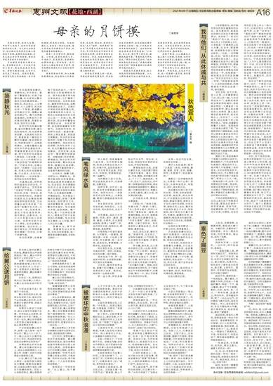 2021年9月17日/星期五/ 湾区新闻部主编/责编 李青/ 美编 伍岩龙/ 校对 谢志忠 惠州文脉·花地西湖投稿邮箱:wbfkblsl1@ycwb.com