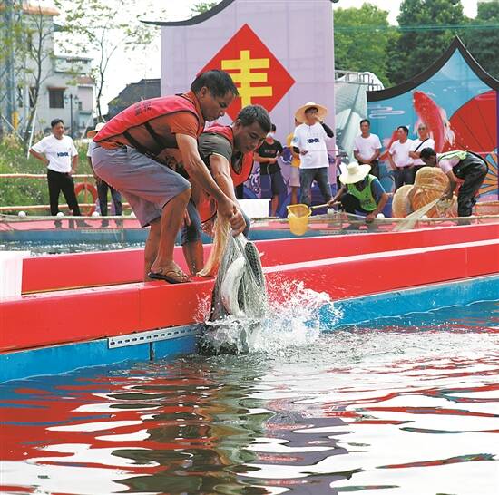 文/图 羊城晚报记者 黄磊 梁正杰 通讯员 刘颖君 丰收季节,鱼肉恰鲜肥。9月22日,南海区九江镇于九江国风园举办“丰收节庆百年芳华——2021年九江镇鱼花产业嘉年华”活动。本次活动由南海区九江镇人民政府主办,以九江鱼花、九江鲈鱼、农业产业特色为题材,广泛传播现代农业产业品牌。 捕鱼比赛现场热闹精彩 “嘟——”上午10时许,由九江镇党委书记徐永强按响风鸣笛,标志着本次活动中最引人入胜的“抢丰收”大赛开始。早已在鱼塘边做好准备的渔民们争先恐后,大步跨向鱼塘,他们在进行的是其中“抢丰收·捉塘底”的比赛。 “捉塘底”俗称“刮鱼”,原指在成鱼收成后,排掉鱼塘大部分水,村内老少下鱼塘,齐捉塘底的漏网之鱼。当日,工作人员在比赛鱼塘预放了鳗鱼、生鱼、草鱼等各种成鱼,模拟“刮鱼”后“捉塘底”的场景,不同的鱼依其捕捉难度对应不同的积分,最终积分多者获胜。 同时,另一个同样精彩的“抢丰收·抛渔网”比赛也在进行中。抛渔网参赛选手可以向两个方形场地组成的落网区撒网,在落网区中已经预放有1000斤鱼,20分钟内参赛选手可无限次抛网,渔获积分多者为胜,同时网到的渔获均归参赛选手所有。 多项活动擦亮九江渔业文化品牌 除了捉塘底、抛渔网比赛外,活动现场还设置了九江鱼花传统“挑鱼花”展示、非物质文化遗产展示、百年九江鱼花产业、水产养殖业宣传展示、西江种质资源活体展示、渔家文化展示以及“称鱼回家”等多项展示和体验活动。 在“挑鱼花”的展示中,挑鱼者肩挑两木桶活鱼,在行进过程中边走边上下晃动扁担,桶中水花溅起。据了解,这一做法是给鱼苗增氧,确保鱼苗在运输过程中的成活率。在非遗展览的现场,编织渔筛的技艺传承人展示了竹子如何一步步形成圆口扁身的九江渔筛,目前,九江已为这一传统技艺申请南海区级非遗。 此外,活动当日,“寻江问渔”——九江镇田园水岸艺术季装置艺术作品征集大赛公布评审结果,其中朱英元创作的《渔家传承》等一批优秀装置艺术作品入选。 以水为根走出特色乡村振兴之路 据了解,近年来,九江镇鼓励农业适度规模经营,精心培育了一批农业种养大户和龙头企业,全镇年均鱼苗孵化量达1000亿尾,约占全国产量的10%,其中加州鲈苗年产量约占全国产量的60%,成功打造“中国淡水鱼苗之乡”“中国加州鲈之乡”。 早在2020年6月,九江启动省级现代产业园——“九江鱼花产业园”。九江鱼花产业园项目总投资为2.61亿元,按照科研选育、特色品种、鱼苗繁育、生态养殖、物流加工等业态进行功能区域划分,逐步形成“双核六区一带总体布局、两大功能组团联动”的发展格局。 南海区副区长陈绍文表示,希望九江镇继续打造好“中国淡水鱼种业名镇”和“粤港澳大湾区高品质水产养殖示范区”,深入实施乡村振兴战略,不断谱写农业强、农村美、农民富的新篇章。