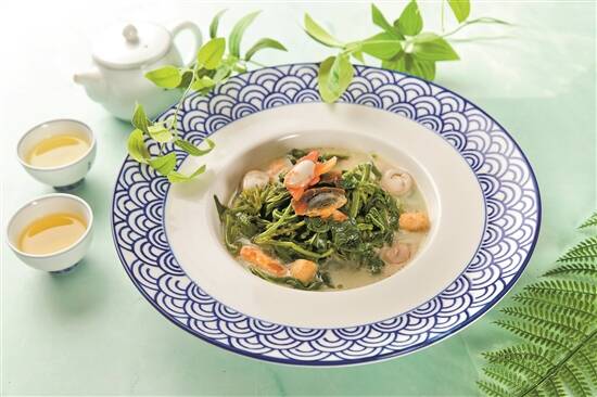 每个节气都有属于它自己的味道,在中国大酒店首层食街,秋的味道就在桑叶、藕带、子姜所带来的三道时令新菜中: