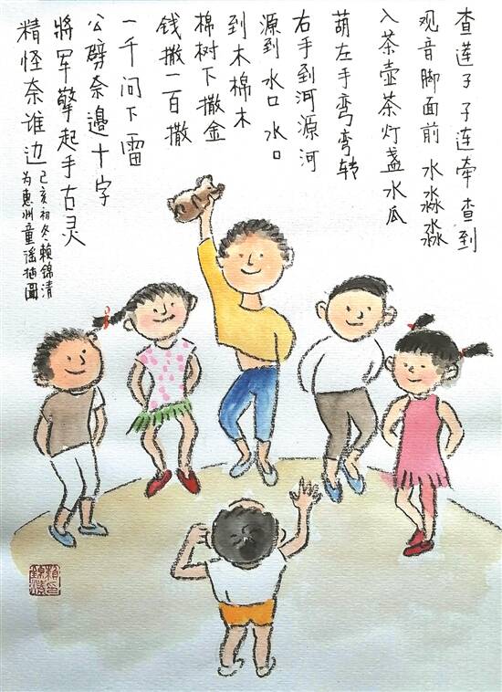 玩游戏时所唱的童谣《查莲子》,老一代的惠州人大多唱过这首歌 赖锦清 画 |