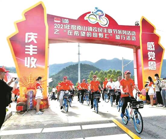 羊城晚报讯 记者薛仁政、梁正杰摄影报道:9月23日,三水区南山镇以“庆丰收 感党恩”为主题,举办丰收节系列活动,包括“在希望的田野上”骑行活动、省道S528线南山镇路段改造工程通车仪式、“悠然漫水”垂钓大赛暨增殖放流活动、星空民宿开业剪彩仪式、南山镇旅游集散中心及越侨风情街建设动工仪式。 当天上午,位于南山镇的粤港澳大湾区现代都市农业综合示范基地十分热闹。随着起点的号令发出,一众骑手开始在围绕该综合示范基地的5.2公里路线上快乐骑行,放眼望去,尽是一望无垠的水稻田。 “站在粤港澳大湾区现代都市农业综合示范基地的稻田边,再一次感受到南山作为三水区‘生态小镇’的独特魅力。”三水区委农办、区扶贫办专职副主任廖兵表示,南山镇作为区农业重镇,肩负着全面推进乡村振兴、加快农业农村现代化的重要使命。 近年来,南山镇始终把“三农”工作摆在突出位置,坚持农业农村优先发展。全镇142条自然村成功创建“干净整洁村”;粤港澳大湾区现代都市农业综合示范基地初见成效;引进佛山市生猪保供基地;投入4.5亿元实施57个治理项目改善河涌水质……农民生活幸福感不断提升。 南山镇积极推动“农业+科技、农业+文化、农业+旅游”新发展,未来几年将打造出一个集现代农业技术研发展示、智慧农业耕种示范、现代农业休闲旅游一体的综合示范基地,推动南山加速从传统农业向智慧农业升级,实现农业智能化、标准化、现代化。 另外,在粤港澳大湾区现代都市农业综合示范基地,三水区南山镇政府和农行三水支行举行了金融服务乡村振兴战略合作签约仪式,支行将在五年内向南山镇乡村振兴产业和项目提供不少于30亿元的意向授信额度,进一步服务南山镇农业产业的发展。 随后,还举行了省道S528线南山镇路段改造工程通车仪式。该路段北起南山镇城区中石化路口(与省道S264交界),南至南山镇塘排路口(与S118线交界),全长5.383公里。改造工程整治原有水泥路面破损、完善沿线排水和安全设施、全线铺设沥青罩面等进行改造,比原计划工期提早半个月完工,实现全线沥青化。“该项目改造完成通车对于改善南山镇交通状况、拉动区域招商引资和旅游产业发展具有重要意义,这是一条致富路、民心路,更是希望路。”南山镇委委员骆钊明表示。