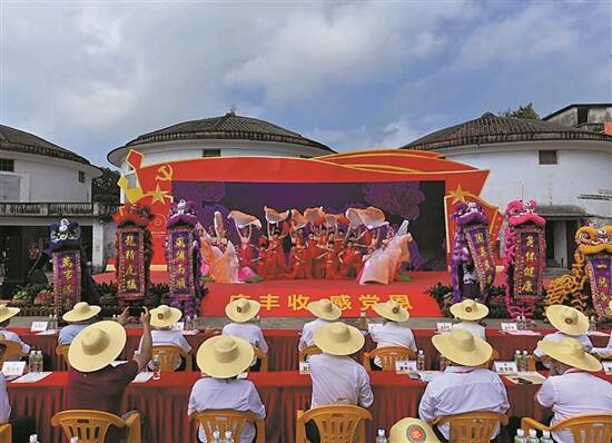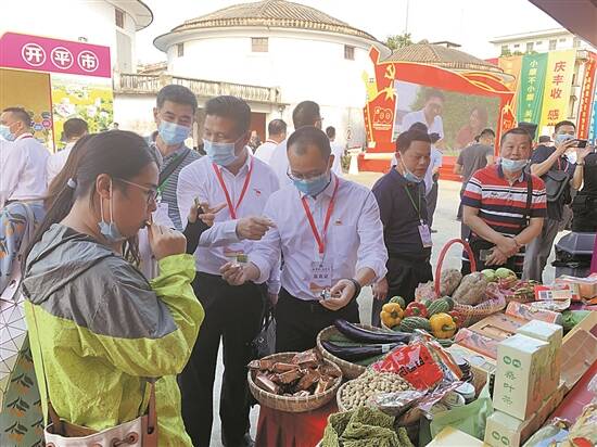 文/图 羊城晚报记者 陈卓栋 通讯员 江宣 谭耀广 23日上午,江门市以“庆丰收、感党恩”为主题的庆祝2021年中国农民丰收节活动在江门开平市塘口镇天下粮仓举行启动仪式。活动现场设“品丰收”八大特色展区,全面展现江门农业发展的新成果,具有五邑侨乡特色的名特优新农产品悉数亮相。同时,丰富的侨乡民俗文化特色节目纷纷登上舞台表演,农民群众载歌载舞,分享收获喜悦,感恩党的领导,展望美好未来。 启动仪式上,相关部门还分别为江深食用农产品标准试点单位、2021年新增广东省特色农产品优势区、2020年国家和广东省农民合作社示范社授牌,广东省农业科学院江门分院同时揭牌成立。活动还通过新媒体直播巡展的形式,线上线下展现江门农业发展的新成果。 全面展示现代农业发展成果 在活动举办地——塘口镇天下粮仓,记者看到一大早现场就人头涌动。群众穿梭于八大特色展区,参观、品尝、购买特色农产品。 据悉,“品丰收”八大特色展区展示内容各有不同。其中,“庆丰收、感党恩”主题展示区通过图文形式,展现江门市建党100周年来取得的农业优势成果;三区四市综合展示区展现各市(区)现代农业发展成果,以及农村人居环境整治等新农村建设重要成果,展示最具当地特色的农产品,展现农村新风貌;六大特色优势农业产业展示展销区展示陈皮、大米、鳗鱼、马冈鹅、茶叶、禽蛋等全产业链发展成果;消费帮扶专区主要展示扶贫成果,现场展销帮扶产品;特色农产品展销区现场设摊位,让企业推介各自特色农产品及美食;普法宣传区开展“乡村振兴、法治先行”农业农村普法宣传,组织法律服务者、普法志愿者到现场为农民群众解答法律问题;农旅文化区展示特色乡村旅游线路,通过以农为景、以旅游为媒介、以文化创意为动力,全面推动乡村振兴发展;农业机械区展示无人机、收割机、插秧机等现代农业机械,普及农业耕种知识。 农业科技进步贡献率达70% 活动中记者也了解到,据统计,去年江门市实现农林牧渔业总产值突破500亿元,成功创建国家农产品质量安全市,创建了8个省级以上现代农业产业园,市级以上重点农业龙头企业数量发展到131家,培育认证国家地理标志农产品16个,数量居全省第一。全市农业科技进步贡献率70%,成果转化率超55%,水稻生产综合机械化水平达90.2%,均走在全省前列。 今年上半年,江门市农林牧渔业总产值202.05亿元,同比增长16.8%,比全省平均水平高6个百分点。16659人相对贫困人口全部实现脱贫出列,近五年人均收入平均增幅28.69%。今年以来,全市农民人均可支配收入在去年的基础上又实现了新增长,提前两年实现比2010年翻一番目标。 出席启动仪式的江门市委常委、组织部部长张元醒代表江门市委、市政府,向全市农业从业者致以节日的问候。他指出,江门侨乡农耕文化底蕴独具特色,一代又一代五邑人民默默耕耘、辛勤劳作,造就了粤港澳大湾区重要的“米袋子”“菜篮子”和“海鲜铺子”;富民兴村产业迈入发展“快车道”,农村颜值更美丽生活环境更宜居,农民增收致富的道路越走越宽。张元醒强调,全市各级各部门要以更有力的举措全面推进乡村振兴,切实做好巩固拓展脱贫攻坚成果同乡村振兴有效衔接,稳定粮食综合生产能力,发展富民兴村产业;实施乡村建设行动,深化农村改革,推动江门市乡村振兴走在全省前列、迈入全国第一方阵。