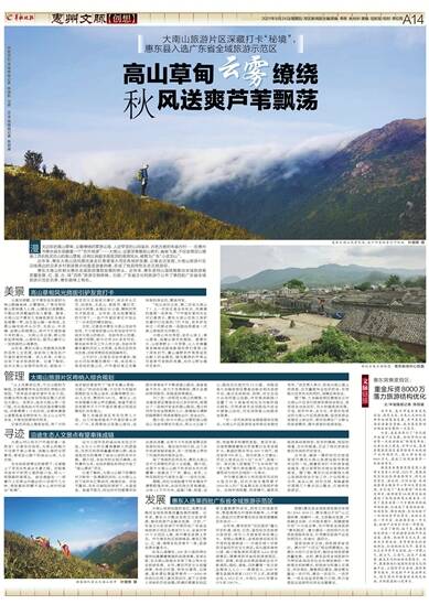 统筹策划/羊城晚报记者 陈骁鹏 马勇 文/羊城晚报记者 陈丽媛 无边际的高山草甸、云雾缭绕的草原云海、人迹罕至的山间溪谷、古色古香的寺庙古村……在惠州市惠东县东部藏着一个“世外桃