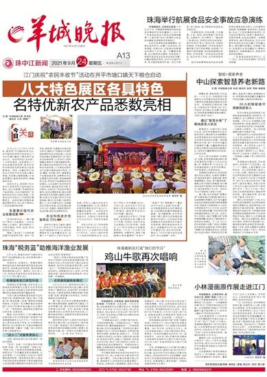 1957年10月1日创刊 珠中江新闻 2021年9月24日 星期五 辛丑年八月十八 湾区新闻部主编/责编 黄铁安 / 美编 陈日升 / 校对 黄小慧 手机报料: