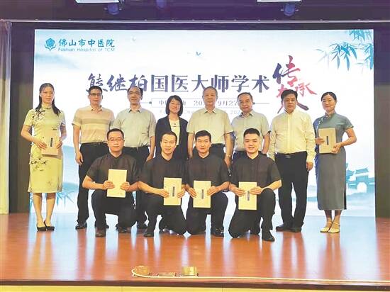 羊城晚报讯 记者张闻、通讯员张键怡摄影报道:“学中医,第一要读书,第二要临床,勤奋读书,刻苦实践,是中医成才的必由之路。”9月27日上午,一位耆耆老者的讲座引人入胜。老者是著名国医熊继柏,他这次来佛山,是要将毕生所学在这个“岭南成药之乡”留下传人。 当天上午,熊继柏国医大师学术传承大会在佛山市中医院召开。会议上,佛山市6名医师当场拜师。拜师礼按照古法进行。肖秋生等6位弟子朗读拜师贴、行师承礼并向老师敬茶,熊继柏向弟子赠书并赠语。记者了解到,本次拜师的6位弟子并不是“新兵蛋子”,而都是佛山市中医院具有丰富一线诊疗经验的“精英部队”,以“师姐”肖秋生为例,其本身已是重症医学科副主任中医师,拥有16年的临床经验,“师父对弟子的选择很严格,要经过经典考试、面试、综合考试三关。” 肖秋生告诉记者。 据介绍,熊继柏出生于1942年,中共党员,国医大师,中国中医科学院学部委员,湖南省第一届名中医。熊继柏从事中医临床六十余年,公开发表学术论文100余篇,撰写出版中医学专著22部,其中独立著作12部。近十年来,并已带教中医高级学徒300余人,正在不断地为中医的传承作出贡献。 当天除了拜师大会,熊继柏更现场开展讲座,熊继柏国医大师传承工作室也在佛山市中医院挂牌成立。佛山市卫生健康局副局长尚慧玲表示,佛山市中医院引进熊继柏国医大师及其专家团队,不但通过搭建一个高规格的中医学术传承工作平台,推广和发展国医大师临床经验和学术思想,培养一批医术精湛、医德高尚的名中医队伍,不断完善医院高层次人才结构。