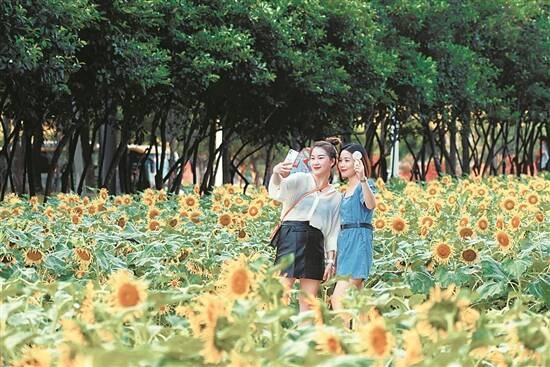 羊城晚报讯 记者李天军、通讯员杨子摄影报道:连日来,8000多面国旗飘扬在福田区各大主干道上空,形成一道空中最美风景线。国庆假期即将到来,记者从福田区城市管理和综合执法局获悉,国庆期间,福田将推出缤纷活动“大礼包”,为市民游客增添假日欢乐。 市民花田花事忙,向日葵花海热情绽放。又到赏花好时节,位于市民中心南广场的“网红打卡地”市民花田迎来了新一季的盛花期。本季向日葵于8月初开始种植,在社会组织、市民及志愿者们辛勤耕耘、精心养护下,绚烂的向日葵花海热情绽放,不失为这个假期的最佳打卡地。 福华路·深圳节日大道假日狂欢,市集、演出燃起来。9月30日至10月7日,精彩活动将不间断上演,文创、餐饮市集,音乐、快闪演出,最“硬核”的街头文化,最“躁”的感官体验尽在其中。据了解,节日大道从去年开启以来,引入优质资源,注入艺术、文化、展览、音乐、运动等多样优质活动和时尚元素,推出了众多精彩活动,为市民游客们提供了观赏、游玩、互动、交流的开放公共空间。 4.3公里超长公园走廊,侨香路浪漫登场。福田区城市管理和综合执法局给侨香路来了次大变装,花境景观和多种绿叶植物相呼应,串联道路绿化带,连接多个社区公园,丰富变化的景观和多种游乐、休闲设施为生态公园走廊带来浪漫的氛围,也为市民游客带来野趣十足的城中漫步新体验。
