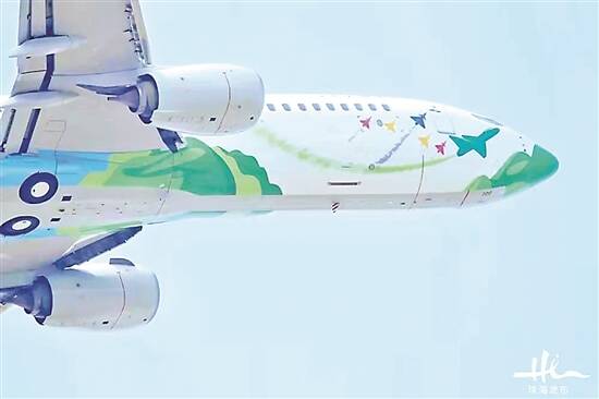 羊城晚报讯 9月28日13时12分,一抹青春之绿从珠海航展馆缓缓升起。它先是低空展示机身的生动彩绘,后与蓝天白云相互辉映、融为一体——这就是珠海第一架喷有城市形象图案的彩绘飞机——由南航执飞的波音737-800“青春珠海号”,首次翱翔在中国航展上。除了开幕首日表演外,10月1日以及10月3日都将有“青春珠海号”的身影。 “青春珠海号”彩绘飞机为波音737-800型客机,隶属于中国南方航空珠海航空有限公司。本次“青春珠海号”参与的飞行表演,更是代表了中国民航的航空公司首次参演,向观众展示中国民航的服务水平。 我们看到“青春珠海号”第一个动作是“低空通场”。飞机以每小时280公里的速度,在跑道保持几乎贴地的高度进行飞行,能清晰地向观众展示飞机的涂装,这也是代表珠海航空向来宾和观众致意,属于一种航空礼仪。 接着,飞机大仰角起飞爬升并于空中盘旋。在阳光投射下,飞机机身涂装彩绘的日月贝歌剧院,更具人文与现代的气息,汇聚了全新的能量与光芒;航展的五彩轨迹与一抹青春之绿在天空画出珠海的全新蓝图。富有油画感的背景,通过简单的线条勾勒和层次的叠加,呈现出珠海绿意盎然的景象。 (杨雪薇)