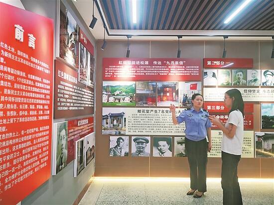 松源派出所专职红色宣讲员正在讲解红色松源历史 |