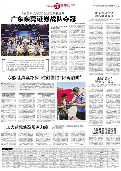 日前,笔者从建行东莞市分行获悉,截至9月末,该行普惠金融贷款余额突破300亿元,当年新增超70亿元,成为建行系统内首个突破300亿元的非省会二级分行,服务的普惠金融客户也已突破2万户。
