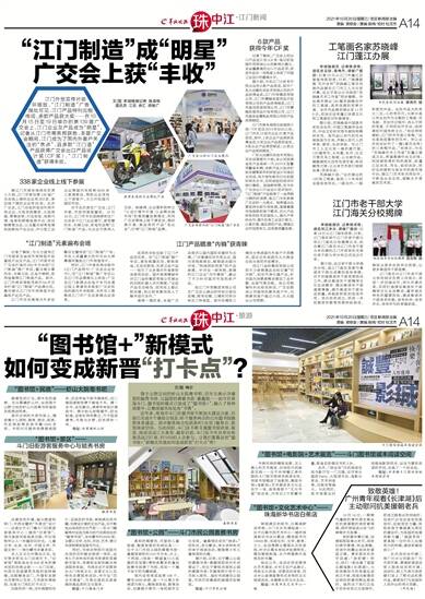 文/图 羊城晚报记者 陈卓栋 通讯员 江讯 余汇 谭耀广 江门外贸宣传片循环播放、“江门制造”广告随处可见、江门产品特刊竞相传阅、多款产品获大奖……在10月15日至19日举办
