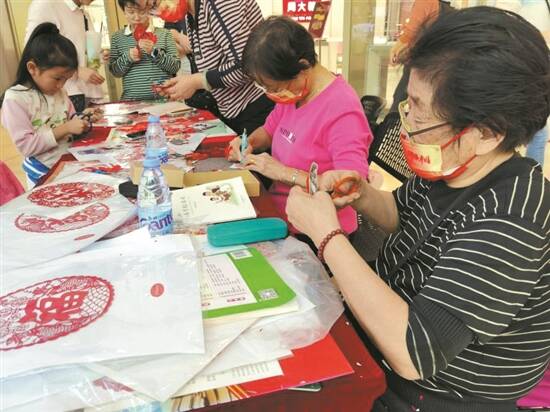 羊城晚报讯 记者李天军摄影报道:24日下午,由中共福田区委宣传部,福田区文化广电旅游体育局,福田区文学艺术界联合会主办,福田区梅林街道办事处和福田区民间文艺家协会、梅林街道文化站通力合作共同承办的“文心行动”——“百人剪纸 千套作品 万家同心”福田区民间文艺家协会进社区活动在深圳绿景佐阾虹湾购物广场举办。 数十位剪纸老师一字排开,台上摆放的琳琅满目剪纸作品、手上创作的各式剪纸纹样,吸引了在场市民的热情围观和积极参与、交流学习,现场2000件剪纸作品被争相索取。剪纸老师和现场观众一张张喜悦的面孔,掩饰不住心中的喜悦和激动,个个洋溢着幸福美好的表情。区民间文艺家协会组织100多位剪纸老师,在3个月内设计、制作了带有“福”字文化的百种剪纸作品5000幅。在活动启动仪式上,装有100多幅剪纸作品的14个文化大礼包,向梅林街道13个社区以及商场进行了赠送,希望这些作品成为社区百姓、商圈朋友工作生活的饰品、交流礼品和创作学习的摹品。下梅林社区老年协会蓝会长在接受这个非遗文化大礼包时激动地说:“我们一定要把这些作品带回去学习好、传承好、创作好和宣传好。”文艺评论人、高级记者苏伟先生在现场感慨地说:“今天这场文心行动,真正体现了文艺工作的目的和方向,正是社会主义文艺工作者服务社会、服务大众的一次最好的、最接地气的文心行动,是深圳文化的一个范例,更是社区文艺、商圈文化的一次新体验,值得宣传推广。” 据悉,“文心行动”是由深圳市福田区文联发起并组织,由福田区各文艺家协会具体实施的文艺惠民工程。福田区文联管理的10个文艺家协会分别与福田区10个街道办事处签约结对,结合正在进行的党史学习教育工作,组织开展“我为群众办实事”实践活动,为辖区群众献上一份精美的文化大餐。