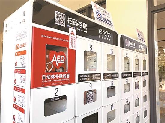 羊城晚报讯 记者郭起摄影报道:伴随全社会对自动体外除颤仪(以下简称AED)在公共场所覆盖的关注,更多社会力量开始参与到这一应急基础设施建设中。近日,一批配备了AED的智能取餐柜在深圳上线,这也是全国范围内首批配置“救命神器”的智能取餐柜。 据悉,深圳市公共安全义工联合会联合送餐企业共同推出的公益智能柜,共计约50台,覆盖深圳各中心城区的写字楼。每台取餐柜皆装备了一套完整的AED急救设备,在遇到紧急情况时,市民可以自行打开智能取餐柜对应格口,遵照取餐柜侧以及AED急救包中的操作指南,进行心肺复苏抢救。 “这是全国范围内首次将AED放进智能取餐柜”,深圳市公共安全义工联合会秘书长杨明川表示,当遇到心脏骤停的情况,只有在最佳抢救时间的黄金4分钟内,利用AED设备对患者进行除颤和心肺复苏,才是有效制止猝死的办法。 深圳市公共场所目前共配备了6500台的AED,覆盖率达全国第一。深圳市安全义工联合会表示,对这一批“安心柜”创新的探索,也是希望在建设城市应急基础设施的过程中,可以整合社会资源、引入更多爱心企业,形成可以持续的公益推广模式。这一批智能取餐柜只是一个开始,将通过社会共建、全民共享,逐步实现AED在深圳公共场所的全覆盖。