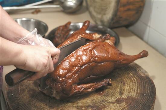 文/梅尔 梁少冰 图/梁劲波 地道,怎能错过老字号?一家土土的老店,仅用三道菜足以让食客找到回家的味道。 横山大酒楼,可谓珠海市斗门区莲洲镇响当当的老字号。1997年创办至今,经营足足24年,专注烹调莲洲特色食材,而且人气一直“在线”,现在已经成为莲洲镇美食打卡地标之一。皆因幕后有一位爱钻研美食的总厨周仲香“香姨”,她既是酒楼创始人,又是每一道出品的“把关人”。 原始手法烹调传统美味 “横山鸭扎包”是斗门区莲洲镇一种民间传统美食,自清朝光绪年间传承至今已有一百余年,作为土生土长的莲洲人,“香姨”一家二十多年来,坚持最原始手法制作—生晒鸭扎包。 鸭扎包制作最关键是要调味调得好,外加晾晒够时日。 横山大酒楼的鸭脚鸭翅选自莲洲本地饲养60天以上的麻鸭,鸭下巴、鸭脚、鸭翼、鸭肝、鸭肠和腊肉采用“香姨”特调秘制酱汁,用传统的方法腌制,而且拒绝用机器烘干,百分之百太阳底下晾晒,这样制作出来的鸭扎包,外观呈琥珀色,晶莹剔透,光泽鲜亮。 蒸熟后的鸭扎包香气四溢,咬下去韧性适度。鸭扎包的精华在捆绑鸭杂的鸭肠,可谓吸收了鸭杂的美味,分外好吃。 香姨告诉笔者,小时候家里每年都会自己晒制鸭扎包,在耳濡目染下,就学会了制作鸭扎包这门传统手艺。后来就在横山旧街开店专门卖鸭扎包,一边听取客人的意见,一边不断地改良。香姨说:“过去到现在,从选料、调味、腌制、生晒,每一个步骤都亲力亲为,保证出品质量。现在店里鸭扎包经过改良后,虽然仍然沿用独特传统工艺制作,但口味更加大众。” 此外,香姨精心制作的腊肠也是酒楼的一绝,香气浓郁、肉香味突出,口味老少皆宜。香姨还表示:“腊肠是采用最上好的猪肉制作,也特别受欢迎,不少顾客都说我们家的腊肠香味和口感都特别好,家里的老人和孩子都非常爱吃,因受客人们的喜爱,腊肠我们一年四季都会制作和供应。” 如今,横山大酒楼制作鸭扎包获得“斗门知名手信”的称号,鸭扎包和腊味更享誉珠海及周边城市。 限时限量吃当地特色菜 除了鸭扎包,上横黄沙蚬也是酒楼“爆款”之一。 不时不食,每年的农历二月,斗门水乡的黄沙蚬一日比一日肥美起来。得到香姨厨艺真传的儿子黄敏豪,精心烹制的黄沙蚬,每年总会吸引不少食客慕名而来。 黄沙蚬选用的是莲洲本地的新鲜食材,洗净捞出后,撒上蒜蓉、辣椒圈,并加入纯正花生油。经过猛火蒸熟后,个个壳体张开,嫩白蚬肉诱人,香味四溢,说让人垂涎三尺一点不为过…… 与此同时,香姨还注重打造酒楼“硬菜”。明炉烧鹅,则是她研制的心血,用古法明炉制作,使用独家酱油调制。刚出炉的烧鹅全身仿佛泛着金光。刀子干脆落板,听见鹅腹“咔嚓”的焦脆,斩切成块时皮肉分而不离,烧鹅皮微微透光,吸收了油脂的甘香,皮脆肉嫩,入口酥化。 黄敏豪说,我们的脆皮烧鹅是用明炉制作,味道非常独特,高峰期一天能卖出10多只,在整个斗门区内,味道也是数一数二。 默默耕耘打造家的味道 从业24载,香姨有着别人难以理解的执念。坚持不将酒楼搬到城中心,也不爱宣传促销,只在乎菜品最原始的味道。儿子黄敏豪从一汤一羹做起,只为延续妈妈的味道。厨房已成一家三口最看重的阵地,从每天开开玩笑唠唠嗑开始,默契分工后,转身便准备开启新一天的营生。 或备料,或开锅,或忙着紧盯菜品火候……一家三口用心做的每道菜,仿佛都为远道而来的老友精心准备。对一道道最原始的菜品,黄敏豪一脸傲娇:“这些土味,你在外面吃不到!” 目前,黄敏豪已接管酒楼的经营,除了保证三大“爆款”的出品以外,还积极与母亲一起研发新菜色。 黄敏豪表示,近两个月刚刚研制的新菜式紫菜饼、蜂蜜莲藕、脆皮大肠等,推出以后非常受顾客欢迎。看到别人吃了自家烹制的菜品,给出好吃的评价,就觉得十分开心和满足,以后也会像妈妈那样,用心做好每道菜,希望每位客人都能吃出家的味道。