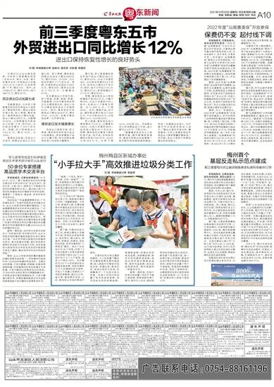 文/图 羊城晚报记者 赵映光 通讯员 许耿莹 袁国宏 记者27日从汕头海关获悉,今年前三季度粤东地区(包括汕头、梅州、汕尾、潮州和揭阳五市)外贸进出口总值1137.1亿元人民