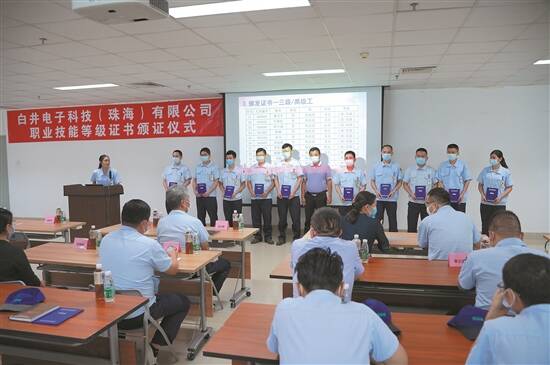 白井电子公司举行职业技能等级证书颁证仪式 受访者供图 |