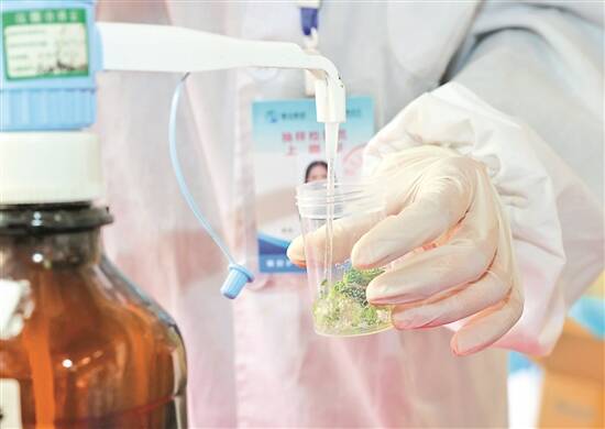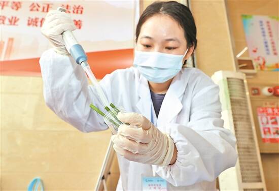 工作人员对样品进行检测 |