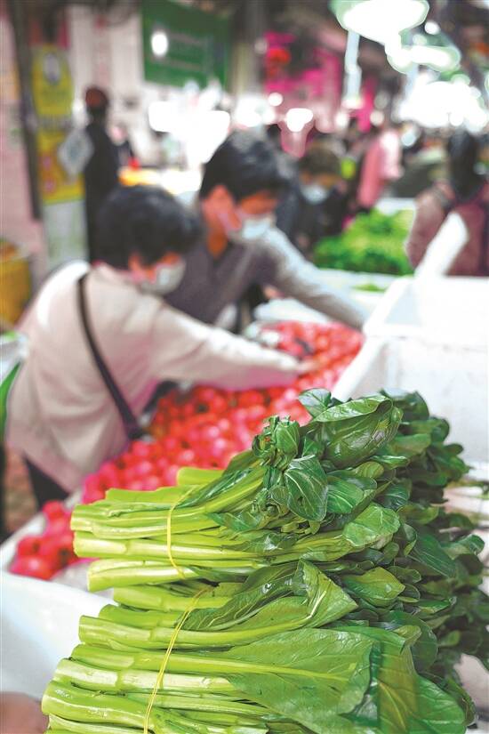 近日,记者走访各大肉菜市场发现,相较于上周,蔬菜市场价格进一步回落,不论是水叶菜类,还是根茎菜类,每斤三四元上下的蔬菜占据“半壁江山”。