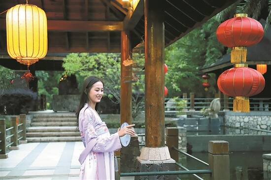美女身着传统服饰,走进惠州温泉景区 惠州市文广旅体局供图 |
