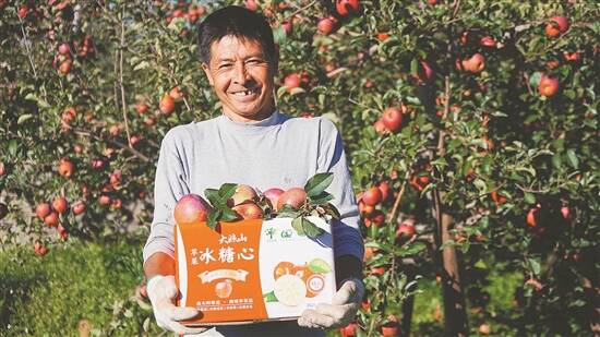 四川盐源苹果产区的种植户廖顺安。他家果园今年“11.11”期间的品牌好果,全部供给电商平台拼多多 李里 摄 |