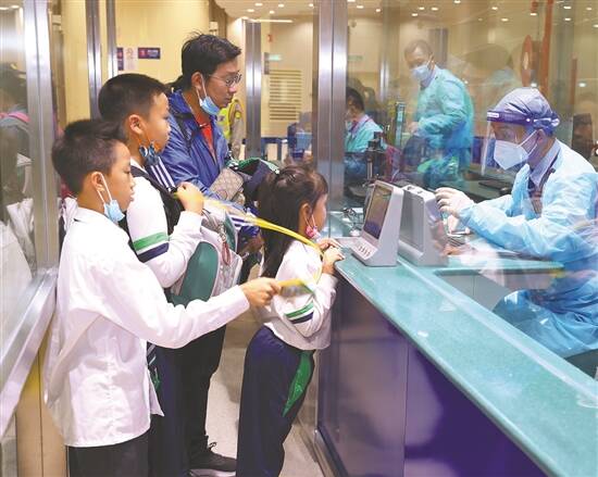 羊城晚报讯 记者文艺、通讯员吴锦军摄影报道:11月15日,青茂边检站正式启用新加建人工通道,其中出入境各4条,新建通道充分考虑到儿童、残障人士、行动不便人士的需求,设置为专用低工位通道。 作为目前国内电子化、智能化程度最高的大型陆路口岸,青茂边检站采用“合作查验、一次放行”的通关模式,出入境大厅各设有50条合作查验快捷通道和2条人工通道,让旅客真正实现了20秒高效通关。 为进一步提升青茂口岸通行效率,青茂边检站持续推进人工通道加建工作,出入境各加建4条人工查验通道。新建的通道考虑了儿童、残障人士、行动不便人士的需求,设置专用低工位通道,便利上述人员通行。 快捷高效的通关环境吸引越来越多跨境学童选择从青茂口岸集中出入境,有效缓解了拱北口岸高峰时期的通关压力,提高了珠澳口岸通关效率,便利粤澳两地人员和经贸往来。