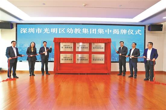 11月29日,深圳市光明区幼教集团集中揭牌仪式在光明区公共服务平台举行。6个幼教集团同时成立,是光明学前教育完成供给侧结构性改革后新一轮变革,标志着光明区的公办幼儿园示范引领机制进入全新发展阶段。 深圳市委教育工委委员、市教育局党组成员、副局长王水发在活动上表示,本次光明区6个幼教集团同时成立并集中揭牌,可以看出光明区委区政府对学前教育的高度重视,充分发挥了先行示范区的带动作用。光明区教育局对集团化办学的整体规划设计,站位深远,引领卓越,不仅出台相关政策指引及时到位,而且在落实发展路径的实践中,勇于探索、与时俱进,以“内外兼修”的建设理念,以“追风逐梦”的姿态,全力打造学前教育的“光明范式”。 据悉,光明区学前教育近两年来奋起直追,成绩卓越,在深圳市教育局牵头组织的有关研讨会上,光明区的学前教育被总结为“三个一”的光明经验。即“一组数据”,全市率先完成国家“5080”任务,公办园占比超过55%,普惠园与公办园占比超过90%;“一套文件”,涵盖民办幼儿园怎么回收、回收标准等方方面面,一把尺子量到底;“一个布局”,在全区六个街道分别布局引进一所市教育局直属优质公办幼儿园,基本在每个社区各建成一所公办园。以优质市属公办园带动新办园,促进优质学前教育资源向全区延伸,实现学前教育优质均衡发展。 而在今年1月第一幼教集团揭牌以来,第一幼教集团围绕“一个集团、两个园所、三个中心”开展工作,在管理文化、课程理念、师风师德建设等方面成绩突出。在一学期的集团化管理探索中,第一幼教集团在文化、课程、管理理念定位上与深圳实验幼儿园保持一致,做到“文化同源,初心同一”,秉承“为孩子种下一生幸福的种子”办园理念,在深圳实验“三人行”幸福课程的基础上,融合光明“科技.生态.幸福”的发展定位,实施“三人行”+生态幸福课程,培养身心健康、情感积极、习惯良好、睿智创新的幸福儿童。核心园与成员园整合资源,通过组建集团名师工作室、定期教研、互访交流活动做到互融共建、互学共长、互助共赢,充分发挥集团化办园的优势。 本次同时成立的6个幼教集团,分别是:光明区第二幼教集团、光明区第三幼教集团、光明区第四幼教集团、光明区第五幼教集团、光明区第六幼教集团和光明区教育科学研究院附属幼教集团。 本次6个幼教集团签约仪式,更是可以依靠集团化办园的优势,带动光明学前教育在全市教育改革大趋势下从“量”向“质”的优势转型,在全面对标“幼有善育”的发展定位中,光明的学前教育始终保持全速冲刺的决心,时刻迎难而上的信心,在区域教育高质量高颜值的发展建设中,跑出“光明速度”。 (于木子 刘雪菲)
