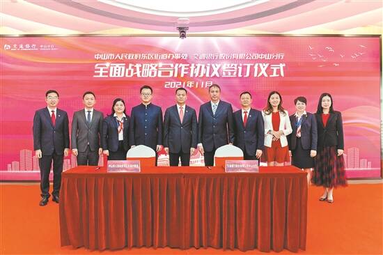 11月28日,交通银行中山分行与中山市人民政府东区街道办事处签订全面战略合作协议。 作为扎根中山32载的金融主力军,交通银行中山分行在中山市委市政府的关心指导下,在广大客户的支持厚爱下,以坚守百年民族金融品牌为使命,以服务地方经济社会建设为己任,为中山市经济社会发展贡献金融力量。 交通银行中山分行党委委员、副行长李丽娜致辞:近年来,交通银行中山分行积极对接市内重点项目,今年以来更是为中山重大交通项目如中江、中开、东环高速,为产业升级转型的临海科技新城、深中产业园、华侨城欢乐海岸等审批超100亿元。该行通过三十余年的耕耘,拥有超过100万个个人客户。该行一直致力于为中山社会各界提供全牌照全方位金融服务,近年来各项贷款年均投放额超200亿元以上,为中山市经济社会发展贡献金融力量。此次与东区街道办事处签订全面战略合作协议,将更好地为东区街道和区内企事业单位、居民提供更优质、全牌照、全方位的金融服务。 东区街道党工委副书记、办事处主任彭勃致辞:2021年东区政府全力打响城市更新攻坚战、项目建设攻坚战、产业升级攻坚战、活力提升攻坚战和环境优化攻坚战,丰收季节战果累累。希望交通银行与东区政府一道,让活力成为东区最突出的特征,让进取成为东区最鲜明的气质,转作风、再出发、开新局。 双方代表签订全面战略合作协议。中山交行将助力推动东区在基础设施建设、产业结构升级、营商环境优化和民生环境改善等领域取得示范成果,形成以加速总部经济区建设为目标的政银全面合作新局面。 新形象、新起点、新发展。交通银行中山分行将与东区街道办事处携手共谋合作新篇,共创美好未来。同时,交通银行中山分行将背靠东区蓬勃发展的经济前景、开放包容的营商环境和惠民惠企的政策优势,加速迈入高质量发展的快车道。 文/图 曾正行