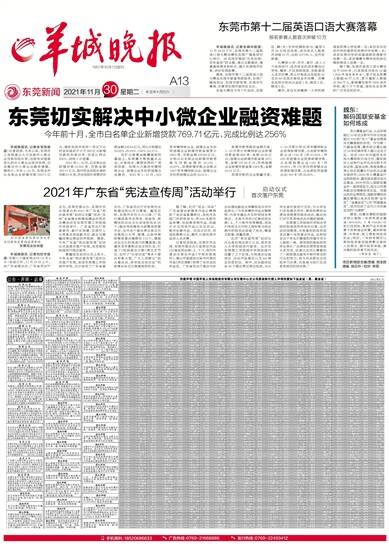 羊城晚报讯 记者余宝珠报道:记者获悉,今年以来,东莞市工信局通过大力实施中小微企业贷款风险补偿,创新性实施差异化的中小微企业信贷扶持,切实解决中小微企业融资难题。据统计,今年1-10月,东莞全市白