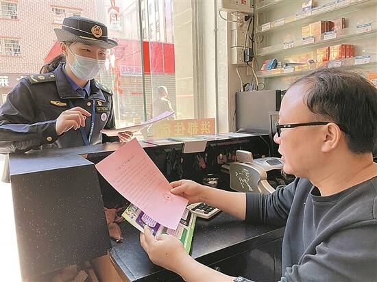 高埗女子中队向商户派发“门前三包”宣传单张 |