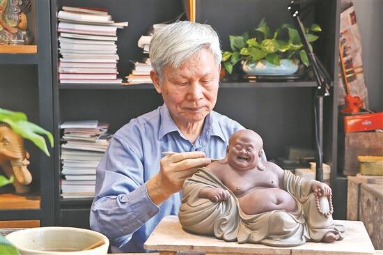 文/图 羊城晚报记者 景瑾瑾 在禅城石湾忠信路49号,有一座紧挨着东平河畔的红砖建筑——8号艺术码头。这里,设有同庆石湾公仔博物馆、亚太大师艺术馆、清代石湾陶瓷廿四行街景、珍陶馆、文创家居馆、龙窑印象等诸多场馆,场馆内的陶艺精品和历史资料,全方位展示着石湾陶艺的美轮美奂及深厚底蕴,静静地诉说着“石湾公仔”走过的古今岁月。 同时,这里还是一个巨大的陶艺创作阵地,云集了40多位陶艺大师。而且,陶艺大师刘泽棉、刘炳、庞文忠、刘健芬、刘雪玲等,都在此处设了工作室。 大师云集,刘泽棉等多位陶艺大师开设工作室 11月23日一大早,中国陶瓷艺术大师刘健芬就来到了位于8号艺术码头的工作室,坐在靠窗的工作台前忙活起来。眼下,她正忙着制作一组名为《喜气洋洋》的作品,这是一件情景化的陶艺作品,呈现的是5个憨态可掬的小孩在玩老鹰捉小鸡,整个作品惟妙惟肖、栩栩如生。 今年59岁的刘健芬,出生在陶艺世家,师承父亲刘泽棉,她在吸收祖辈创作精髓的基础上博采众长、融会贯通,在仕女和儿童题材上尤其擅长,其作品红楼梦组塑《金陵十二钗》便是代表作之一。刘健芬告诉记者,她读高中时开始读《红楼梦》,后来还看了《红楼梦》电视剧,被其中的故事情节和人物形象深深吸引,于是萌生了创作十二金钗陶塑作品的念头。“为了创作《金陵十二钗》的陶艺作品,我多次重读《红楼梦》文本、搜寻相关图片等资料,细细品味每一个人物的性格特点、外貌及衣着打扮。构思这组作品用了好多年,正式创作也历经了三年。”这组作品的人物都是融入具体情节中的,很有画面感。比如,记者在刘健芬工作室看到的《惜春作画》,就是选取贾母命惜春为大观园作画的情节,定格惜春专心作画、迎春和探春在一旁喁喁细语的瞬间,熟练运用石湾陶的贴塑、雕塑技艺,生动传神地刻画出唯美的人物形象,端庄娴静的仪态,丰富典雅的衣裙配饰,处处都是巧夺天工、匠心独运。 8号艺术码头,其所在位置曾是清末民初石湾地区的货运码头,石湾陶由此出发走向世界,从后来出土的丰富多样的陶片来看,这里也曾是全国各地著名窑口产品的集散地。如今的8号艺术码头,由新石湾美陶公司打造,由旧厂房改造而来,占地面积8000多平方米,建筑面积约15000平方米,是一个集创意研发、情景展示、休闲旅游、文化展示等于一体的文化地标,也融合了产学研、陶艺交易等功能。 石湾陶塑技艺的传承和发展,离不开一代代陶艺工作者的砥砺前行。在8号艺术码头内,还云集了亚太地区手工艺大师及中国工艺美术大师刘泽棉、中国工艺美术大师刘炳、中国陶瓷艺术大师刘雪玲、中国陶瓷艺术大师庞文忠等40多位陶艺大师。 记者到庞文忠工作室探访时,他正在为生肖陶艺《好事连连》修坯,摆在他面前的作品造型已经显现,只见一个活泼可爱、手持寿桃篮的仙童,坐于威严、霸气、勇猛的“百兽之王”老虎身上……年满七旬的庞文忠,专注陶艺创作已有44载。在其工作室内,陈列了近百件陶塑作品,其中,帝王人物和功夫人物系列最为引人注目,这也是庞文忠最具个人特色的题材。“我自己本身就擅长人物塑造,当初刚开始做帝王人物陶艺时,市场上这类题材的作品还很少见,因此,这一系列的创作具有独特性,也有利于开拓市场;做功夫人物,则是因为佛山武术底蕴深厚,很值得用陶艺作品来演绎。”庞文忠说。 在8号艺术码头内,还有众多陶艺匠人在工作,他们制作陶艺品的场景,全面系统地展现着石湾陶的制作工艺流程,游客可以近距离参观了解。 精品荟萃,诉说“石湾公仔”走过的古今岁月 记者实地走访发现,8号艺术码头内还设有同庆石湾公仔博物馆、亚太大师馆、清代石湾陶瓷廿四行街景、珍陶馆、陶·咖啡·书吧、文创家居馆、龙窑印象等展示场馆,全方位呈现石湾陶艺之美。 “石湾瓦,甲天下”。欣赏“石湾公仔”的人士十分广泛,但人们对石湾公仔的发展和演变历史往往不甚了解。走进同庆石湾公仔博物馆,仿佛进入了时光隧道,澜石汉墓出土的陶俑(复制品)、宋代的陶瓶、唐代的鸡头瓶、明代的荷叶凳、清代的油灯等历史物件,都在诉说着石湾陶艺走过的古今岁月。同时,馆内还展示了刘传、庄稼、区乾、曾良等近现代石湾陶艺大家的经典作品。 在石湾陶塑技艺的传承和创新中,亚太地区手工艺大师、中国工艺美术大师刘泽棉,是当之无愧的旗帜人物。刘泽棉是土生土长的石湾人,1937年出生于陶艺世家,是“刘胜记”第四代传人,自幼跟随家族长辈学艺。刘泽棉认为,艺术创作必须随着时代的进步而不断创新、发展,而其创作灵感也多源于生活。 为了精进陶塑技艺,他曾以临摹作为重要的学习方式,冒着烈日爬上屋顶临摹明清时期的瓦脊公仔,夜以继日地在博物馆摹制不同风格的馆藏珍品,并且博采众长,重点研究了潘玉书、刘传的艺术风格。多年以来,刘泽棉在创作上硕果累累,《引福归堂》《东坡尝荔》《钟馗醉酒》《兵圣孙子》《十八罗汉》等诸多作品享誉海内外。2012年,在由世界手工艺理事会亚太地区分会秘书处组织的第二届“亚太地区手工艺大师”评选活动中,刘泽棉获得了“亚太地区手工艺大师”的荣誉称号。 8号艺术码头里的亚太大师馆,就是展示刘泽棉陶艺人生故事及经典作品的专门场馆。 珍陶馆也是艺术码头内的一个“宝藏”打卡地,馆内产品