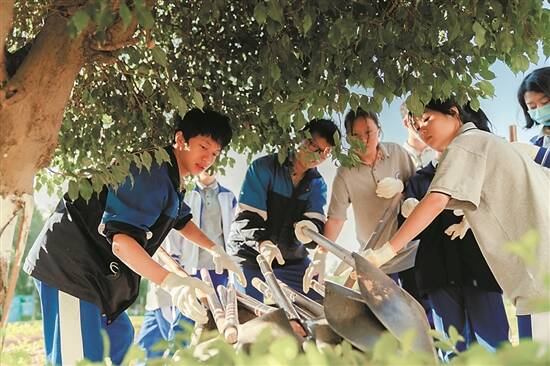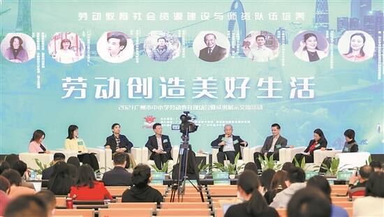 统筹/陈晓璇 文/羊城晚报记者 蒋隽 孙唯 实习生 符晓灵 冯婷婷 马秀岩 图由广州市教育局提供 作为五育之一,大力发展劳动教育是落实立德树人根本任务,促进学生全面发展的重要途径。广州市积极响应国家政策和时代诉求,深入落实劳动教育进校园。11月27日,2021年广州市中小学劳动教育现场会暨成果展示交流活动在广州市中学生劳动技术学校举行。该活动由广州市教育局主办,广州市中学生劳动技术学校、羊城晚报教育发展研究院承办,广州市教育研究院、广州市美术中学协办,以“劳动创造美好生活”为主题,以劳动教育成果展示、经验分享、专家讲座、圆桌会议等多种形式呈现广州市劳动教育成果及特色。羊城派全程直播,收获无数点赞。 劳动成果展现场:实力取胜显劳育风采 画广绘、做面膜、印版画、烹佳肴……会场专门设置了劳动成果展示区,各校劳动小能手摆摊展示,“摊主”们或是主动出击,或是实力取胜,“八仙过海”各显神通。 现场记者的目光被孩子们鲜艳精致的服装和生动有趣的成果吸引。 广州市回民小学四年级刘同学将在综合实践课上种出来的蔬菜送给大家。广州市越秀区朝天小学则凭借中草药面膜吸引了不少尝试者,“我们的面膜分为美白、祛斑、祛痘三种功效。”凭借毗邻广东省中医院、很多学生是医生子弟的天时地利人和优势,孩子们在医生阿姨的指导下,学到做面膜的方法。 在五花八门、形式多样的劳动成果中,美食总能另辟蹊径凭借嗅觉上的冲击力顺利吸睛。广州市花都区花东镇联安初级中学的同学们便在摊位上摆出了一罐罐热气腾腾的猪脚醋、鸡脚醋、鲫鱼醋等“醋”美食,让观众一啖美食。同学们还现场展示了制作“臭屁醋”的工艺流程,辅以现场解说,让观众对“臭屁醋”这种传统美食有了更加清晰的了解。 除传承发扬传统文化外,不少学校依托当地资源,发展劳动教育课程特色。广州市花都区狮岭镇冠华小学身处“中国皮具之都”,早在2007年学校就开设了皮雕相关的专业课程,根据年级层次分别教授皮革剪接和皮雕技能,并将皮雕制作纳入六年级学生的毕业设计内容中。麦老师曾在意大利和北京学习皮雕,之后回乡创业,业余时间回到母校教师弟、师妹制作皮雕、皮具。 在劳动教育课程中,同学们通过种植、制作、学习等多样化的实践活动,获得相应的劳动技能,从中感悟劳动价值,收获劳动快乐。 广州:“三动六策”构建劳动教育新格局 广州市教育局副局长陈敏生以“三动六策”模式为主线,向观众介绍了广州市劳动教育工作情况。“三动”即政府驱动、学术推动、市区联动,“六策”为顶层设计、育人模式、课程建设、师资队伍、品牌活动、资源整合。根据这一实施路径,广州市形成了“3+N”的顶层设计、育人模式、课程体系、师资队伍、品牌活动和资源体系,构建出劳动教育的新格局。 陈敏生总结了广州市教育局探索全市中小学劳动教育模式需要做的五项工作,包括全面贯彻党的教育方针,将劳动教育与其他四育放在同等重要地位,深入推进广州市劳动教育实践;进一步完善经费投入机制,加强场地保障;持续完善教育现代化背景下学生劳动教育的多元评价体系;广泛开展劳动教育主题活动,打造广州市劳动教育品牌;各学校严格按照劳动教育政策文件,形成综合性、实践性、开放性、针对性的学校劳动教育。 陈爽表示,根据“三动六策”主要实施路径,广州市劳动教育达到了预期的社会效果和育人目标:一是改革创新走在前列,二是一校一品形成品牌,三是实践活动内容丰富,四是各区各校特色鲜明。 陈爽提出,要提高政治站位,切实强化抓好劳动教育的责任感和使命感;准确把握育人导向,遵循劳动教育规律,因地制宜,综合施策,积极探索形成符合中央教育理念要求的劳动教育模式;形成广州劳动实践教育联盟和“大湾区中小学生综合素质教育基地”,打造大湾区劳动教育高地。 城区经验:巧用“锦囊”于细节处落实劳动教育 越秀区教育局和从化区教育局作为代表,分享了劳动教育的经验。 “越秀区巧用‘五个锦囊’实现从‘举质量’到‘减负担’的转变。”越秀区教育局副局长陈晓介绍,越秀区以行政驱动,通过统筹协调、专业支撑、协同推进,形成政策制度、教研管理、课程实施等七大保障体制;以教研推动,凭借定位准、人到位、事做好、搭平台“四大法宝”有效促进越秀劳动教育发展;以学校行动,积极开发和建设校内劳动实践场地作为“硬件”,聚焦学生劳动素养,创设和开发劳动实践课程作为“软件”,为劳动教育落实提供场地支持和课程保障;以劳动作业为抓手,科学设计,使其全域渗透,“减负”“提质”并行,促进学生全面发展;以学校劳动和家庭劳动的“两渠”和越秀区将综合实践活动基地生产劳动、区少年宫智造劳动、社会基地职业体验、社区志愿服务劳动地“四道”作为资源整合点,于细节处落实劳动教育。 从化区教育局副局长陆敬强介绍了从化区由农耕文化特色项目和其他特色项目组成的“1+N”模式。从化区出台《广州市从化区教育局关于加强中小学劳动教育的指导意见》,加强劳动教育课程建设与管理,将“农耕从化,知行合一”作为区域劳动教育特色,构建课程体系;加强师资队伍建设,努力打造专兼职结合的劳动教育师资队伍,目前已有1名专职劳动教育教研员、1162名专兼