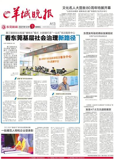 文/图 羊城晚报记者 文聪 黄江镇首创全市出租屋“楼栋长”模式、大朗镇打造“一站式”信访诉求综合服务中心……12月1日,在东莞市委政法委的组织下,东莞市域社会治理现代化观察团前往