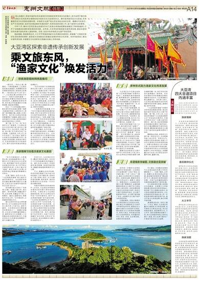 统筹策划/羊城晚报记者 马勇 陈骁鹏 文/羊城晚报记者 陈丽媛 纵观山海惠州,各地丰富多彩的非遗项目持续焕发优秀传统文化的魅力,其中坐落于惠州南部的大亚湾因多彩瑰丽的海洋民俗文