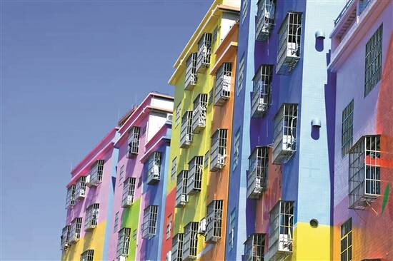 灰色的土墙、陈旧的楼房、乡土气息浓郁……或许是大多数人对农村房屋的印象。在珠海市斗门区乾务镇荔山村,82栋平平无奇的楼房院墙被涂上了绚烂的色彩,斗门“彩虹村”正式出道化身网红打卡点。七彩斑斓,如梦如幻。小小村庄,因此进入了最美时光。 82栋房子 墙绘面积9200平方米 步入乾务镇荔山村村口牌坊,宛如走进了童话世界。 一栋栋楼房被涂上缤纷色彩,阳光下五彩斑斓。赤红、明橙、亮黄、葱绿、靛青、深蓝、黛紫、淡粉……进村道路两侧的楼房外立面化身调色盘,为昔日色彩单调的街景披上了“新衣”。墙绘主打清新文艺风格,运用多种色彩拼接,图案以“荔枝”为主元素,配以花草等图案点缀,时尚而不失趣味,与村子“荔山”的名字相呼应。 据了解,为进一步改善村容村貌,推进乡风文明建设,乾务镇启动建设荔山村墙绘项目,打造美丽乡村景观节点。该项目于今年10月进场施工,邀请专业墙绘团队对荔山村进村道路两侧82栋房子的外立面进行改造,墙绘面积共计9200平方米。目前,该项目已全部完工。 乾务镇镇委副书记张英艳表示,荔山村墙绘项目,是乾务镇今年党史学习教育“我为群众办实事”实践活动的一个重要举措,同时也是镇里“墙绘进乡村”的工作内容之一。通过富有艺术性和生活气息的特色墙绘,打造展示乡风文明的窗口,让广大村民感受文明新风尚,从而助力美丽乡村建设。 扮靓村貌 村民环保意识提升 当优美的墙绘,与屋顶之上的白云、蓝天相接,与熙熙攘攘、烟火气浓厚的街道景象相映成趣,整个村子都显得更加靓丽,看得人赏心悦目。村道两旁的房屋错落有致,沿着村道往前走,随着房子的逐渐升高,丰富鲜亮的色彩相互碰撞,给人以活力满满的视觉享受,宛如一条“彩虹街”。 “你看这个墙绘多漂亮,很多人知道我们村这里搞了墙绘,还特意跑过来看呢!”住在村道边上的黄阿姨开心地说道。荔山村党委委员、村委委员黄素霞介绍:“村道两旁的房子至少有20年历史了,看着比较陈旧。借着这次墙绘项目的契机,我们把它的外立面改造一番,村民们都很支持。墙绘扮靓了村容村貌,不仅让村民们生活更加舒心,也提高了村民自觉维护环境卫生的意识。” 笔者了解到,近年来,乾务镇持续推进“三清三拆三整治”、垃圾分类、农村厕所革命、农房风貌提升等工作,落实落细生态宜居美丽乡村建设,积极打造乡村振兴样板村,助力斗门区乡村振兴建设。 “在村容村貌改造方面,我们积极开展‘墙绘进乡村’工作,希望以这样的形式,为农村人居环境整治开辟一个新路子。”张英艳介绍,除了荔山村,乾务镇今年以来陆续完成了夏村、新村、南山村、狮群村等墙绘项目,各村的墙绘特色各有千秋,既有体现乡村田园风光和生态文明的图景,也有展现本土非遗民俗文化的精华。 据介绍,下一步,乾务镇计划开展荔山村二期墙绘等项目,通过打造更多乡村景观节点,进一步推进乡风文明建设,加速乡村振兴步伐,不断提高村民的幸福感、获得感。 文/图 杨雪薇