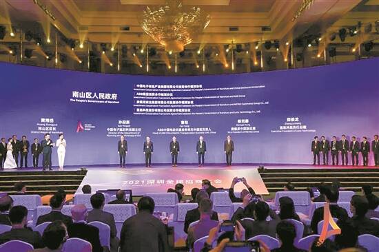 文/图 羊城晚报记者 李天军 15日下午,2021年深圳全球招商大会在五洲宾馆举行,洽谈签约项目超260个,投资额预计超8200亿元,正加快建成世界级创新型滨海中心城区的南山区,在本次大会上收获满满。 记者了解到,南山区共报送31个项目,涉及投资总额超1000亿元;中国电子总部、瑞士ABB电动交通中国总部、蓝思科技国际总部、德国麦德龙南方总部项目现场签约,涉及总投资额441亿元;中航国际、招商局集团、开域国际获评优秀落户企业;南山区荣获“2021招商优胜区”称号。 本次大会根据往年传统继续设置巡展“招商走廊”环节,充分展示深圳各辖区招商成果,营造全市“招商大比武”的积极氛围。大会首次推出“招商优胜区”评选环节,南山区凭借真金白银的投资总额、真抓实干的招商成果、真情实意的优质服务,荣获深圳“2021招商优胜区”殊荣。 实实在在的投资项目,折射出南山的吸引力和创新力,以及全球各地投资者对南山未来发展的信心。今年以来,南山区进一步开展产业招商、延展研发中心招商、拓展境内外招商,先后引进项目120个,预计未来5年将实现产值超千亿元。通过产业招商,引进中国电子、京东方等新一代信息技术领头企业,百度、小鹏等智能网联汽车行业龙头,产业基础高级化、产业链现代化水平持续提升;通过研发中心招商,吸引箭牌、安森美、赛轮等中外企业设立创新研发中心,科技强区、创新高地的势能持续集聚;通过境内外招商,特别在境外招商方面,吸引香港同创、AUTOX等港资企业,瑞士ABB、德国麦德龙、瑞典Hexagon以及美国IBM等知名外企纷纷落户,国内国际双循环中的连接功能持续增强。 据悉,南山区已积极推动2020年招商大会30个重大项目全部落地;瞄准龙头企业开展产业链“精准招商”,共挖掘了辖区产业链项目51个,已推动26个产业链项目落地,进一步推动全区产业形成集群效应;有序推进金融招商工作,已推动10家持牌金融机构落户,进一步丰富了辖区金融业态。