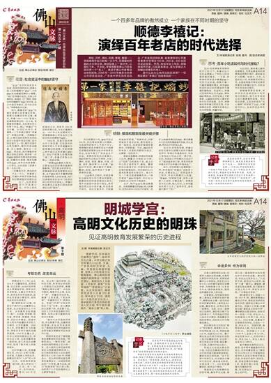 2021年12月17日/星期五/ 湾区新闻部主编 责编 魏琴 / 美编 黄绮文 / 校对 杜文杰 佛山文脉(第一百五十一期) 出品 佛山记者站 策划/统筹 谢红