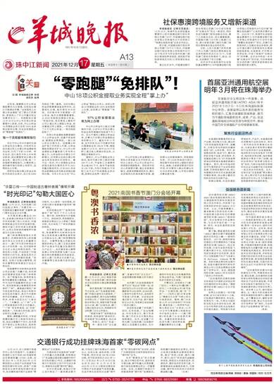 羊城晚报讯 记者文艺报道:12月16日,2021南国书香节澳门分会场在澳门街坊会联合总社区服务大楼迎聚廊隆重开幕。 首次落地澳门的南国书香节分会场,由广东省委宣传部、澳门中联办宣传